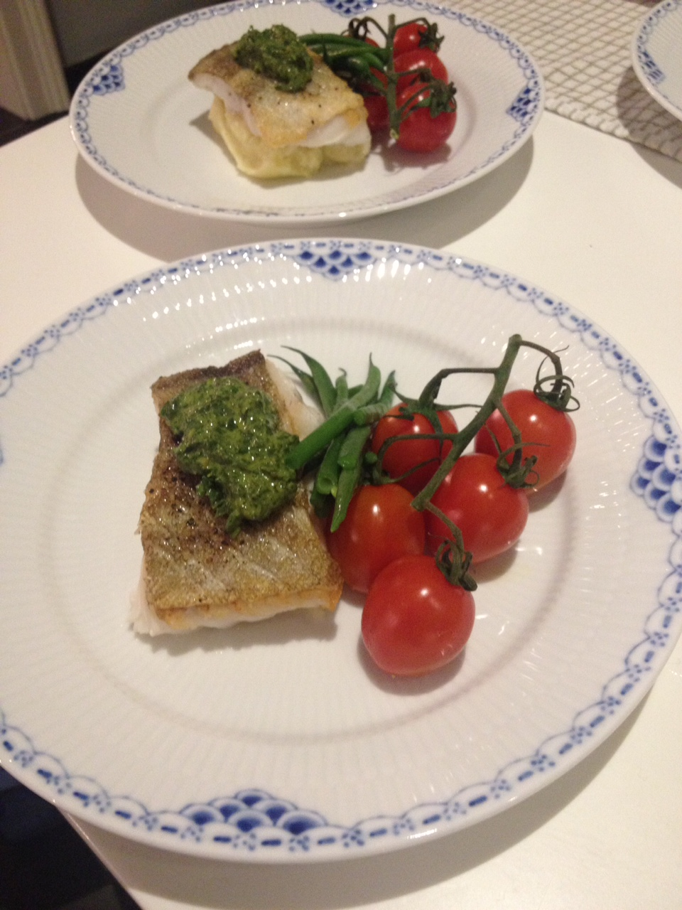 Fish, fish and more fish. Sometimes we have weeks where it seems that every client is having the same thoughts when selecting their menus. This week was one of those and the ingredient in question was fish. We've whipped up delicious Morrocan fish cakes with pickled cucumber and a spicy red pepper relish, scrummy smoked trout salad with quails eggs and peashoot and finally seared loin of cod with salsa verde - yummy yummy yummy. Charlie in particular likes weeks like this as the more fish the better!
